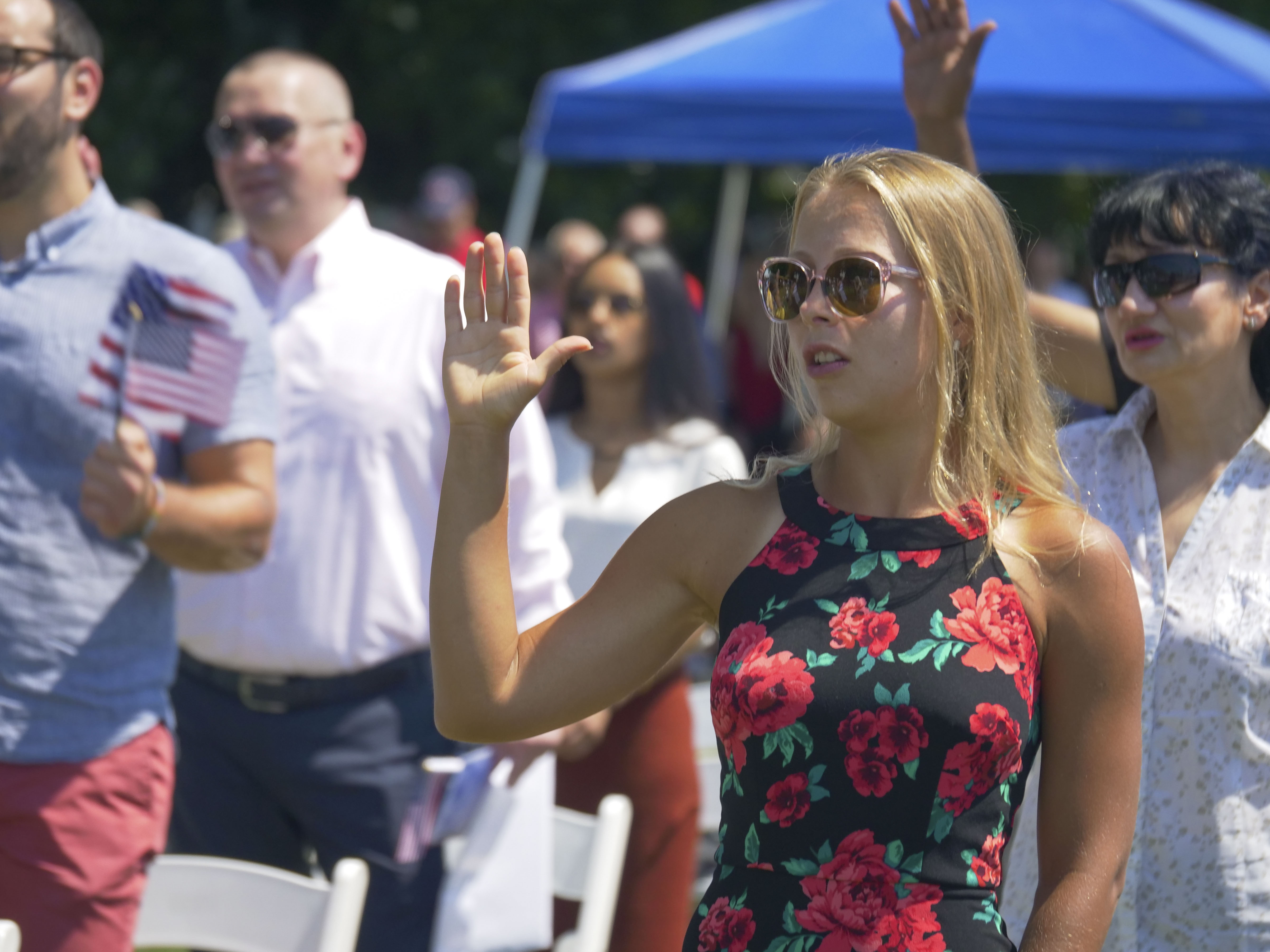 People taking the Oath of Allegiance to become U.S. citizens at Mount Vernon